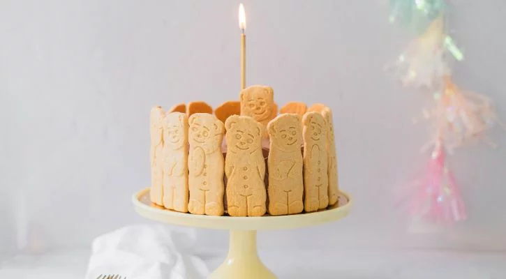 Vous aimez pâtisser ? Faites ressortir le chef qui est en vous et préparez notre délicieux gâteau avec des biscuits nounours Bambix ! Une génoise simple avec une délicieuse ganache chocolat blanc et chocolat au lait, le tout agrémenté de biscuits nounours Bambix sur tout le pourtour. Votre enfant sera aux anges, on parie ? Couteau, fourchette, cuillère ? Votre canaille n’en à que faire, elle préfère manger avec les mains ! Vous trouverez ici la recette du gâteau.