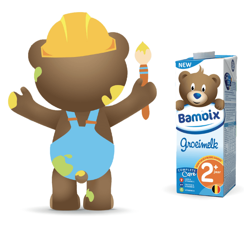 L'ourson Bambix à trouvé quelque chose de vraiment très chouette à bricoler. Quelque chose de simple, avec une brique de lait de croissance Bambix ! Petit conseil ; protéger bien la table avant de commencer car c'est avec de la peinture.